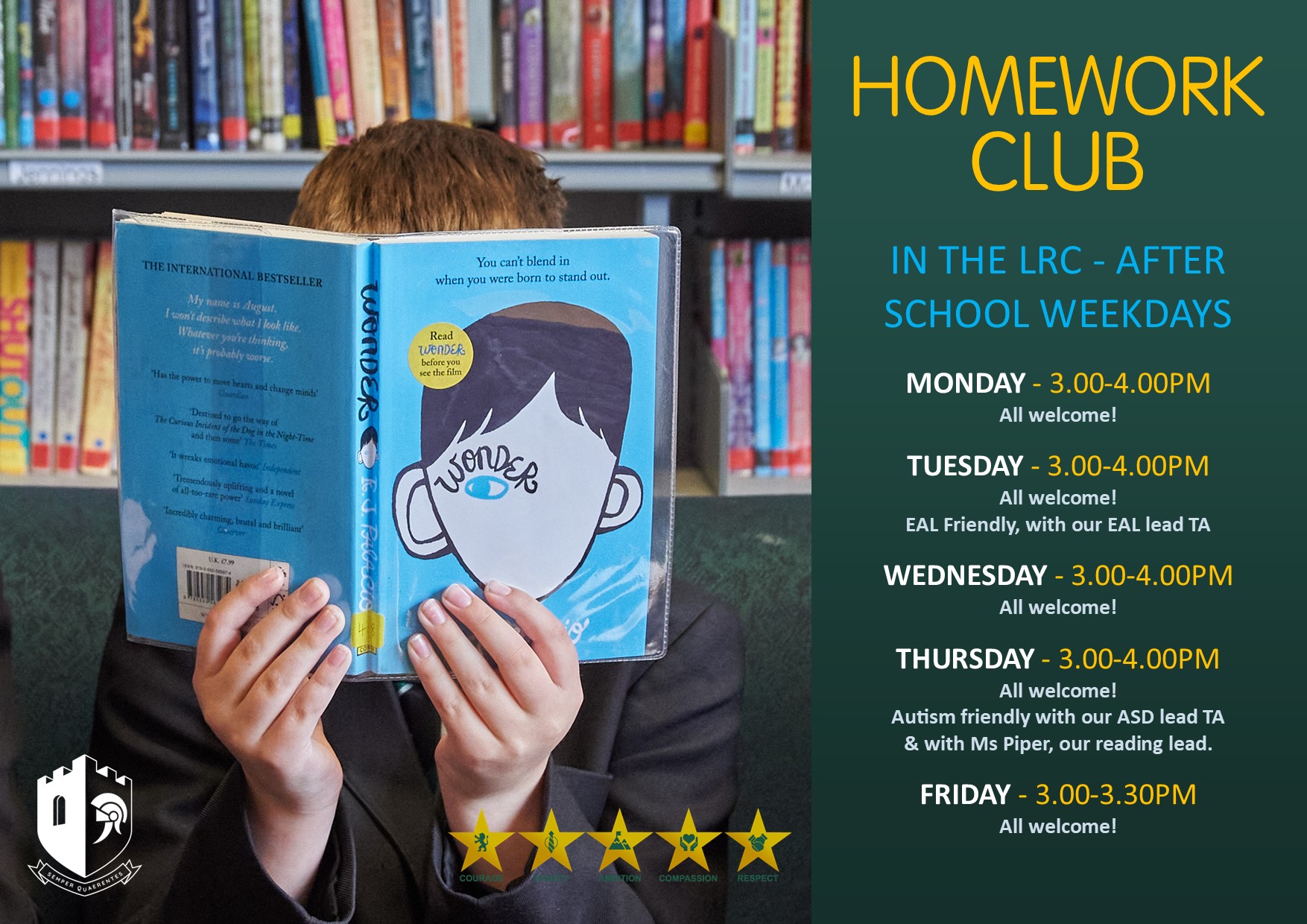 Each subject has a programme of Home Learning tasks linked to the programme of study. Home Learning can be completed at home but can also be completed at school.  The Learning Resource Centre (LRC), for example, is open daily, and we have an after-school Home Learning Club available. In addition, many departments will organise after-school and lunchtime study sessions to help students with their studies.