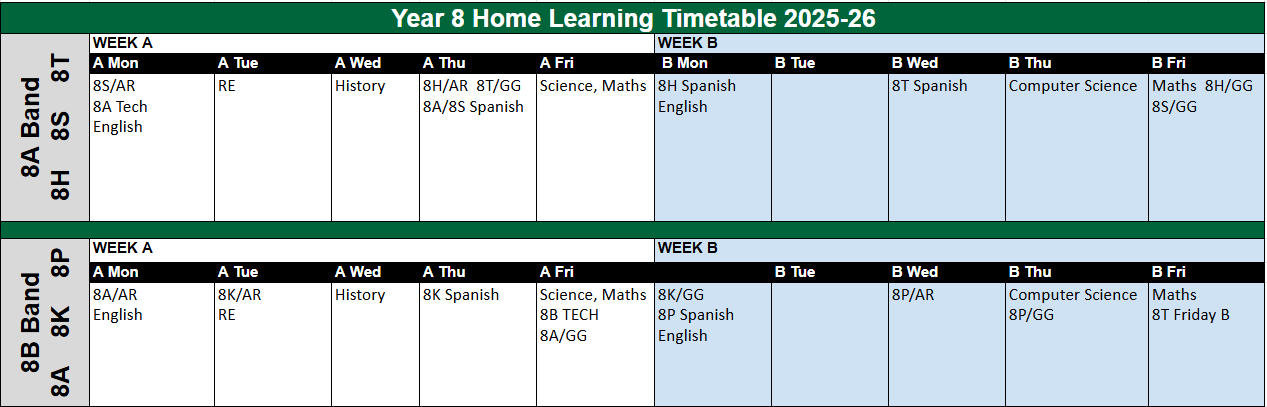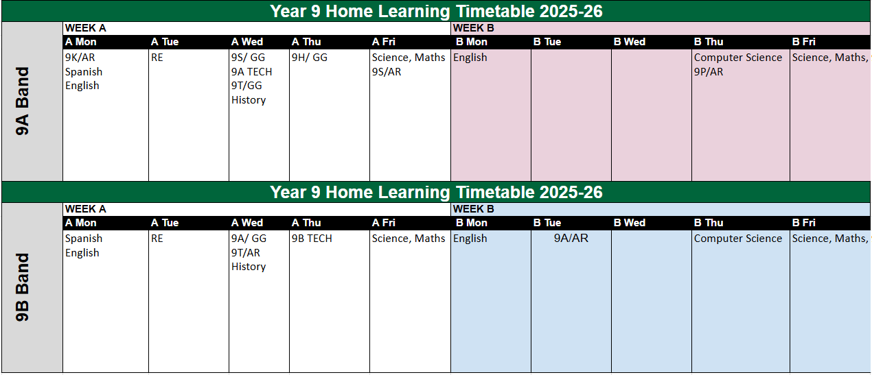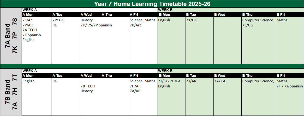 Home Learning for Years 7-9 will be set as given by each faculty policy.